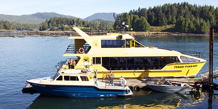 Located 72 miles north of Prince Rupert, and a 4-hour-ride via our water taxis, Ketchikan is a major and first port of entry into Alaska. The community depends on many facets of the marine industry such as shipping, fishing canneries and forestry.