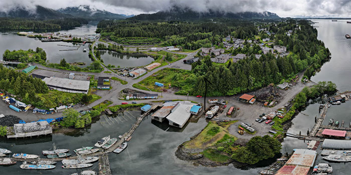 Located at the end of the Portland Canal on the Northwest Coast of British Columbia, the small historic town is known for its mining and logging industry.