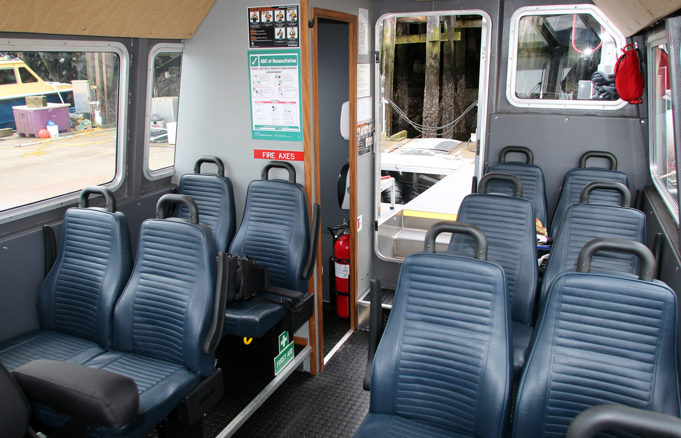 Spacious room for 12 passengers, washroom, aft deck with room for 6 pallets, davit crane for light freight and MOB, ladder on stern setup for MOB retrieval.