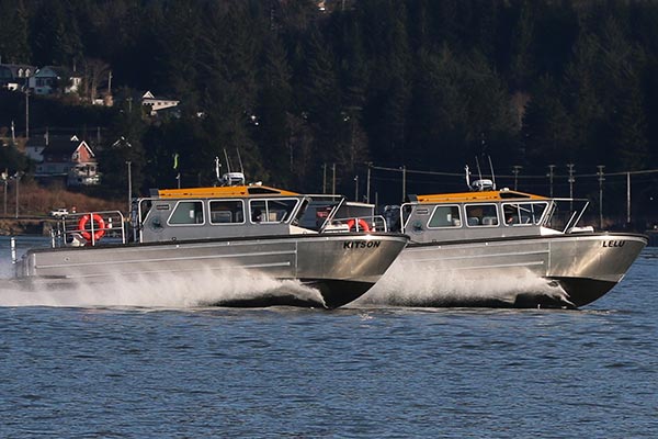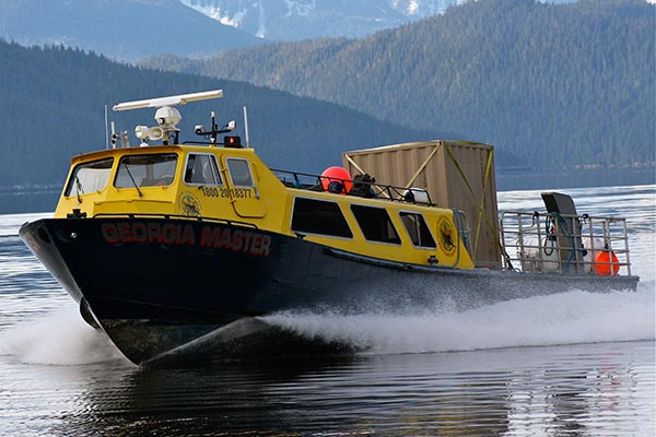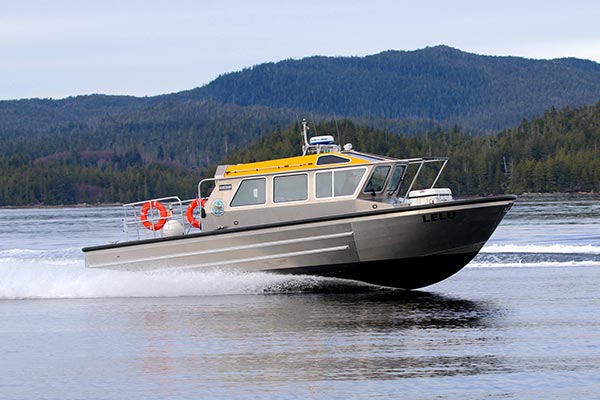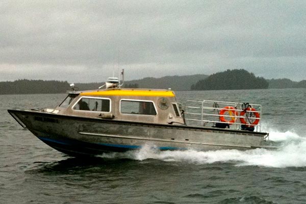 Built in 2000, West Coast Launch’s original jet boat. Highly maneuverable with twin jets, and equipped with a davit crane, built for crew transportation, freight runs and bottom surveys. The New Dawn has a running speed of 27 knots...
